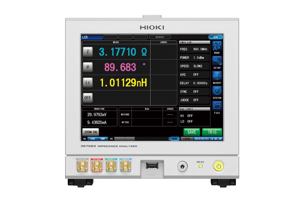 HIOKI Impedance Analyzer range up to 3 GHz devices to suit a wide range of applications in the testing of electronic components. The IM7583 offers a top measurement time of 0.5 ms over a 1 MHz to 600 MHz frequency range, making it ideal for high volume production of ferrite chip beads and chip inductors.
