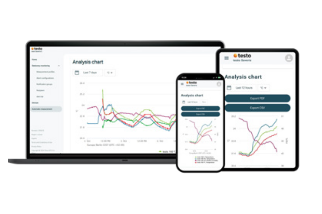 - Perfectly networked: data storage in the Testo Cloud, real-time alarm via email or SMS