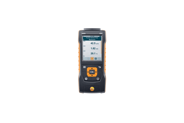 Use the testo 440 air velocity and IAQ measuring instrument in combination with high-quality probes to measure and store all air velocity and IAQ parameters (please order probes separately). Up to 3 probes can be connected simultaneously: a Bluetooth probe, a wired probe and a temperature probe with type K thermocouple connector. Automatic probe detection and clearly structured measurement menus guarantee simple operation and will make your day-to-day work easier